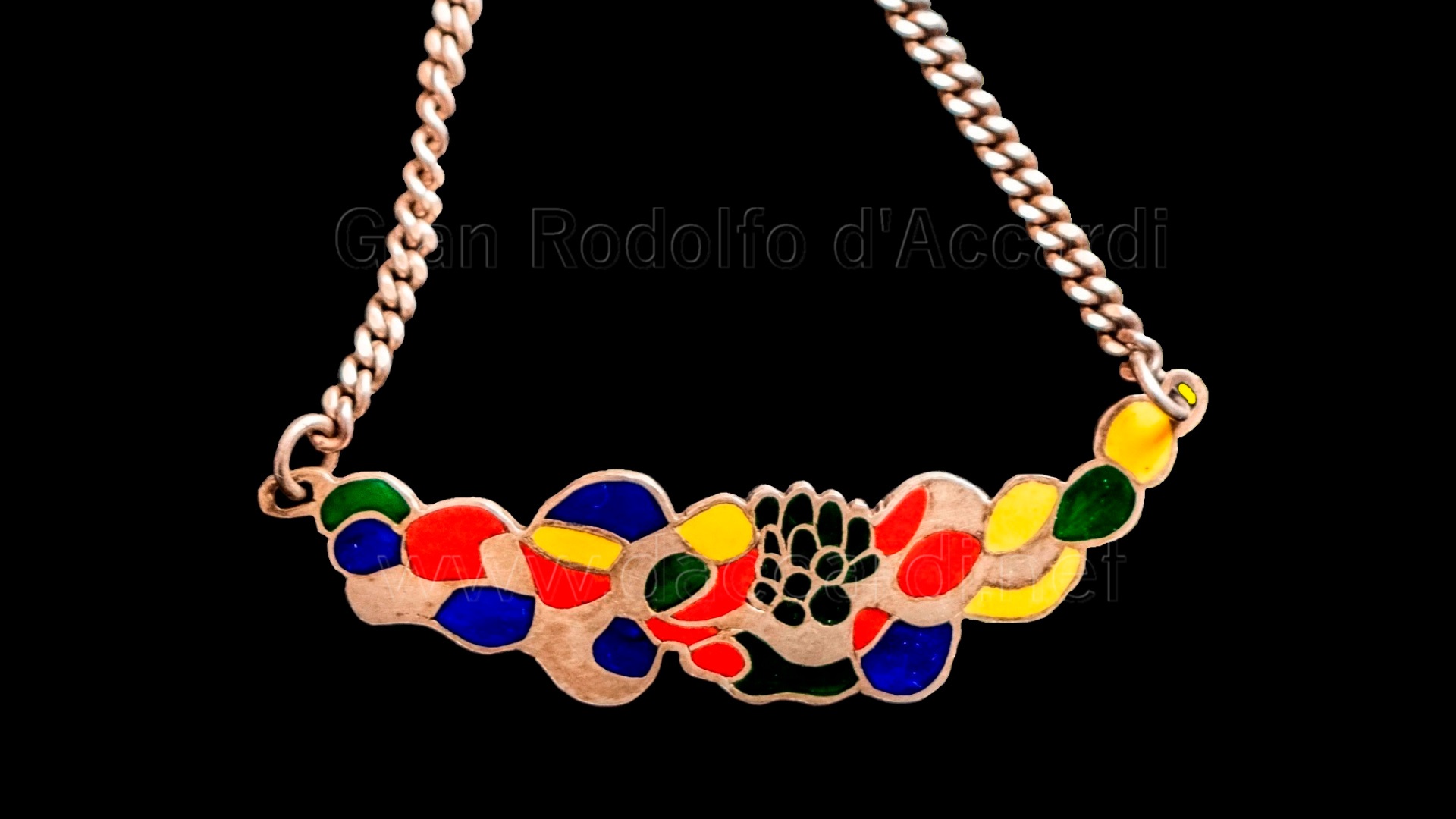 Constantly in search of new expressive forms, in his journey between subject-matter and colour, he also dedicated himself to the creation of jewelry.