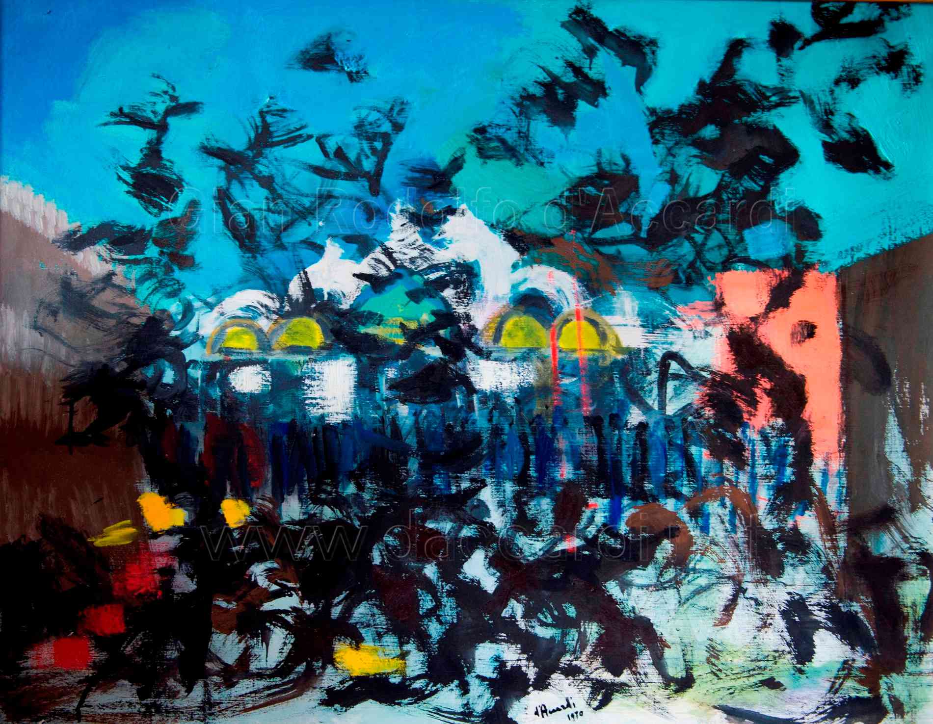 “[…] impetuous colorism, strongly stamped by bright notes, supported by an equally impetuous drawing framework, well supported by the interweaving of rhythms, which appear in the large, rich and sensual chromatic masses. It is art rich in imagination, whose background is a sort of romantic fabulistic rhapsody that, however, does not lack a classical echo in the inspiration and feeling of nature.”