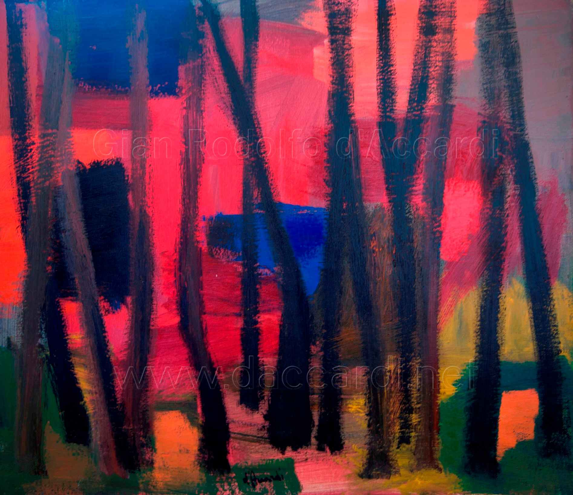 “[…] l’artista è totalmente immerso nel colore. A chiamarlo, a invitarlo quasi, è specialmente il bosco. O autunnale o estivo o primaverile o invernale. E sembra chiaro che il pittore insegue questo tema che gli consente di perdersi in una specie cromatismo sinfonico e come in una colorata vicenda, densa di fascino e di mistero. […] Ma quel colore, che tutto e tutti sovrasta, assomiglia a una condizione beata, forse a una sfera paradisiaca, certo a una zona di fiaba in cui perdersi equivale a trovarsi, a una specie d’avventura redenta, a un affondo in un gorgo di colore e di musica, a un ascolto e a una visione sovrumana che rappresenta la tensione più interna e vivace che vibra dentro a un uomo.”
