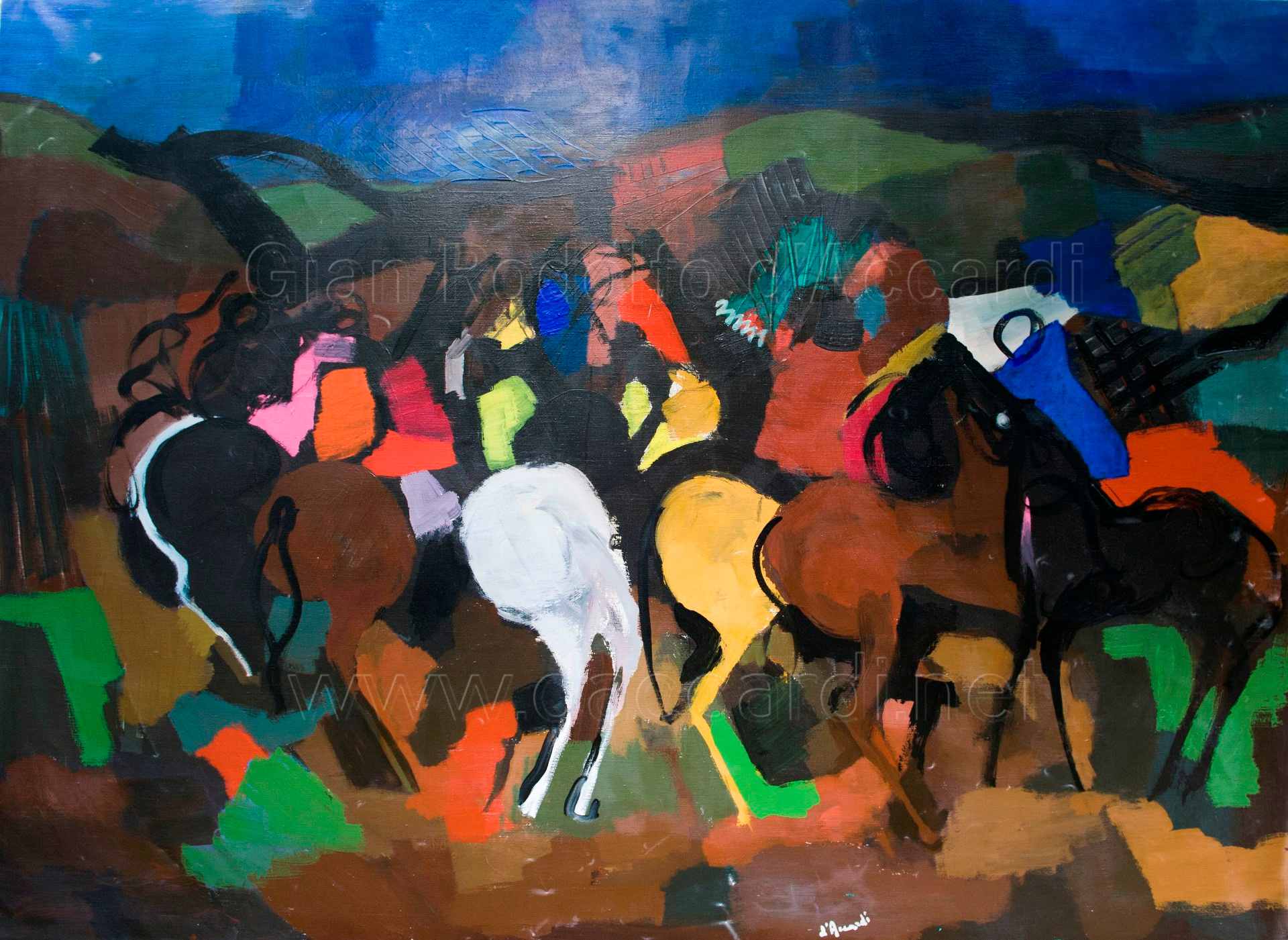 “D’Accardi si forma una maniera che ha per caratteristica «l’essere immersa in un’atmosfera di sogno», dove ben si collocano colori ora d’intonazione aurorale ora d’una stupefatta calura memore delle atmosfere d’autunno. Mediante un pennelleggiare succoso evita ogni marcato contorno, abbandonandosi a un sicuro istinto. Pure paesista, ritrattista e pittore di nature morte, egli predilige narrare storie di cavalli, di leggendarie cavalcate di amazzoni, di mitiche cacce.”
