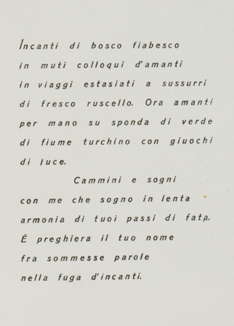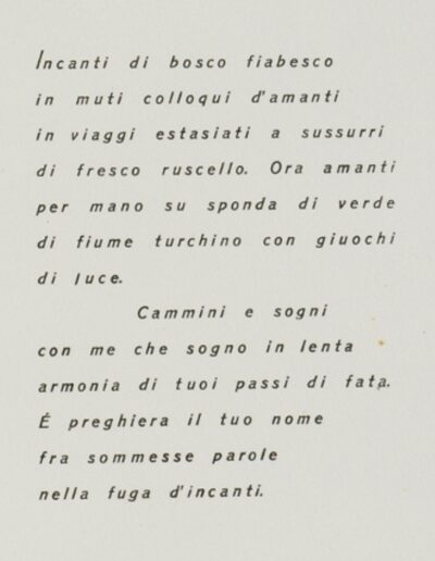 Le primissime poesie si alternano a riproduzioni di oli. Inoltre, uno schizzo di via del Conservatorio a Milano, dove d’Accardi aveva il proprio studio, riporta il lettore agli inizi dell’attività dell’artista.
