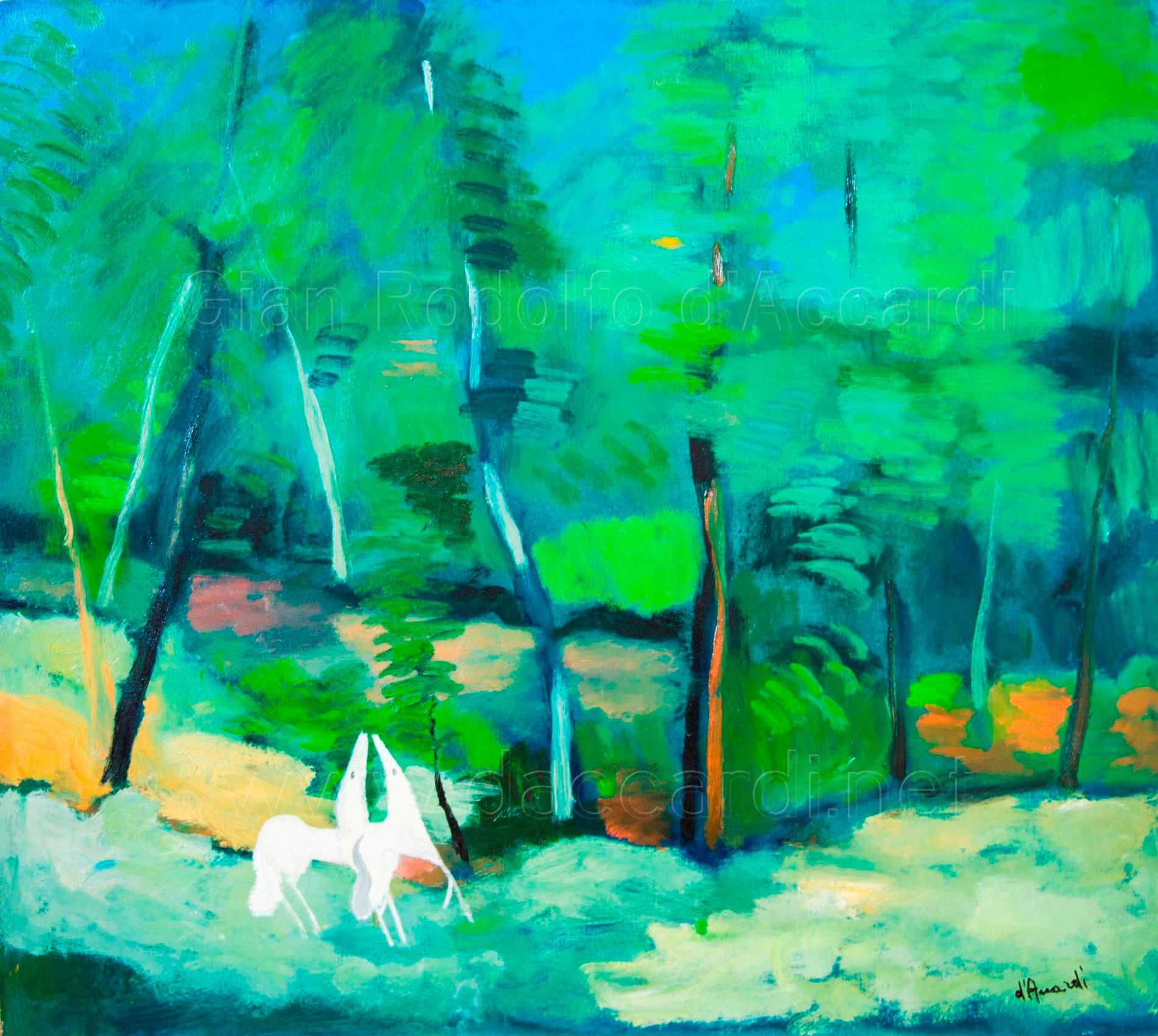“Il suo mondo è una specie di Arcadia vivacizzata dal colore, nella quale uomini ed animali respirano a pieni polmoni il verde delle piante enormi cresciute tanto, per difenderli ed aiutarli a vivere, e sono avvolti da ombre azzurre che trascolorano in un’atmosfera carica di un ossigeno che si vede.