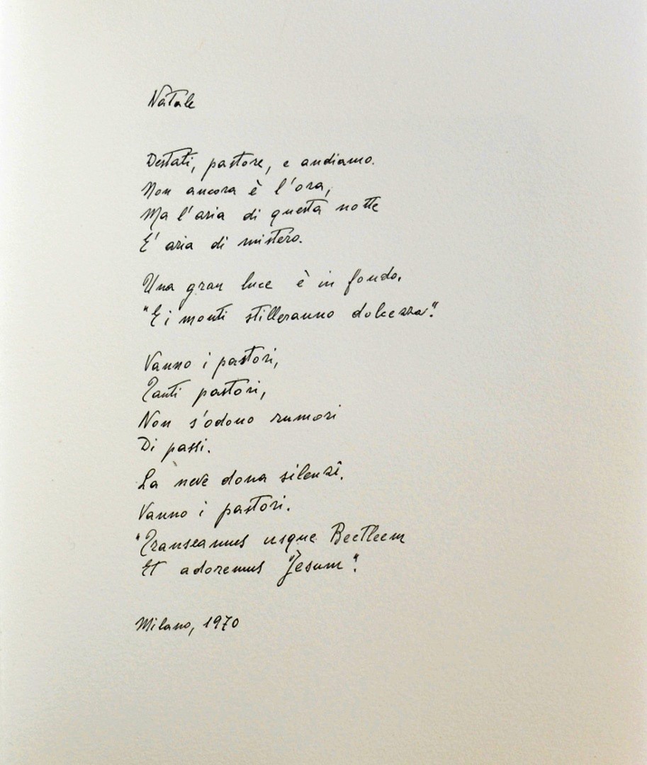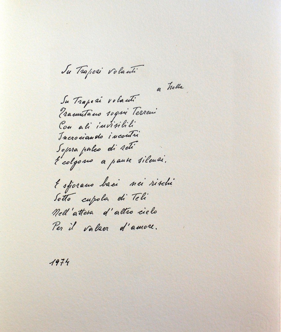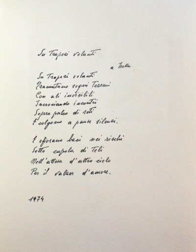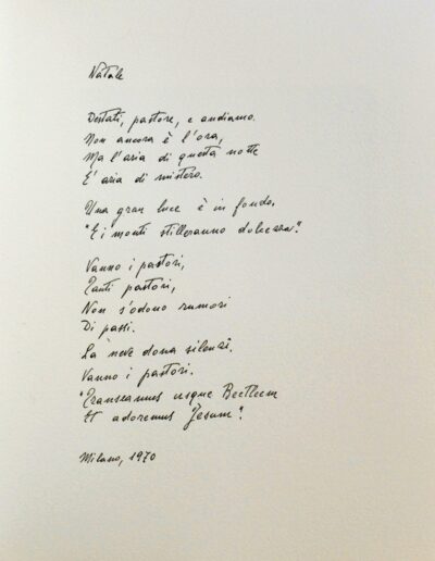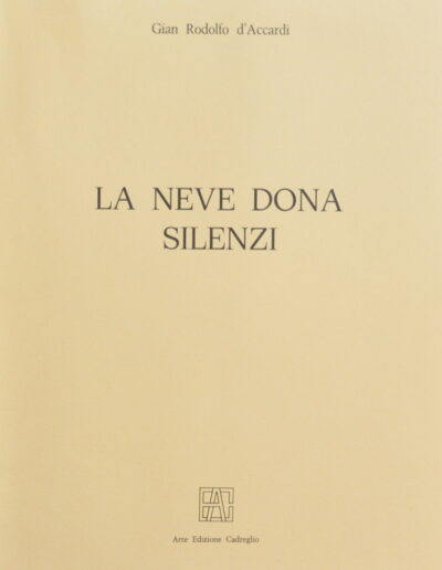 La neve dona silenzi Arte Edizione Cadreglio (1978) L’atmosfera autunnale, la malinconia del circo e gli affetti più cari rivivono in sei poesie, accompagnate da due incisioni ed edite in occasione del Natale 1978. Contattaci Scrivici una mail, ti risponderemo al più presto Nome Email Messaggio Privacy Policy Privacy Policy Autorizzo il titolare del trattamento al trattamento dei miei dati personali per l’invio di comunicazioni relative alla presente richiesta di contatto (Dlgs 196 30/6/2003) Invia