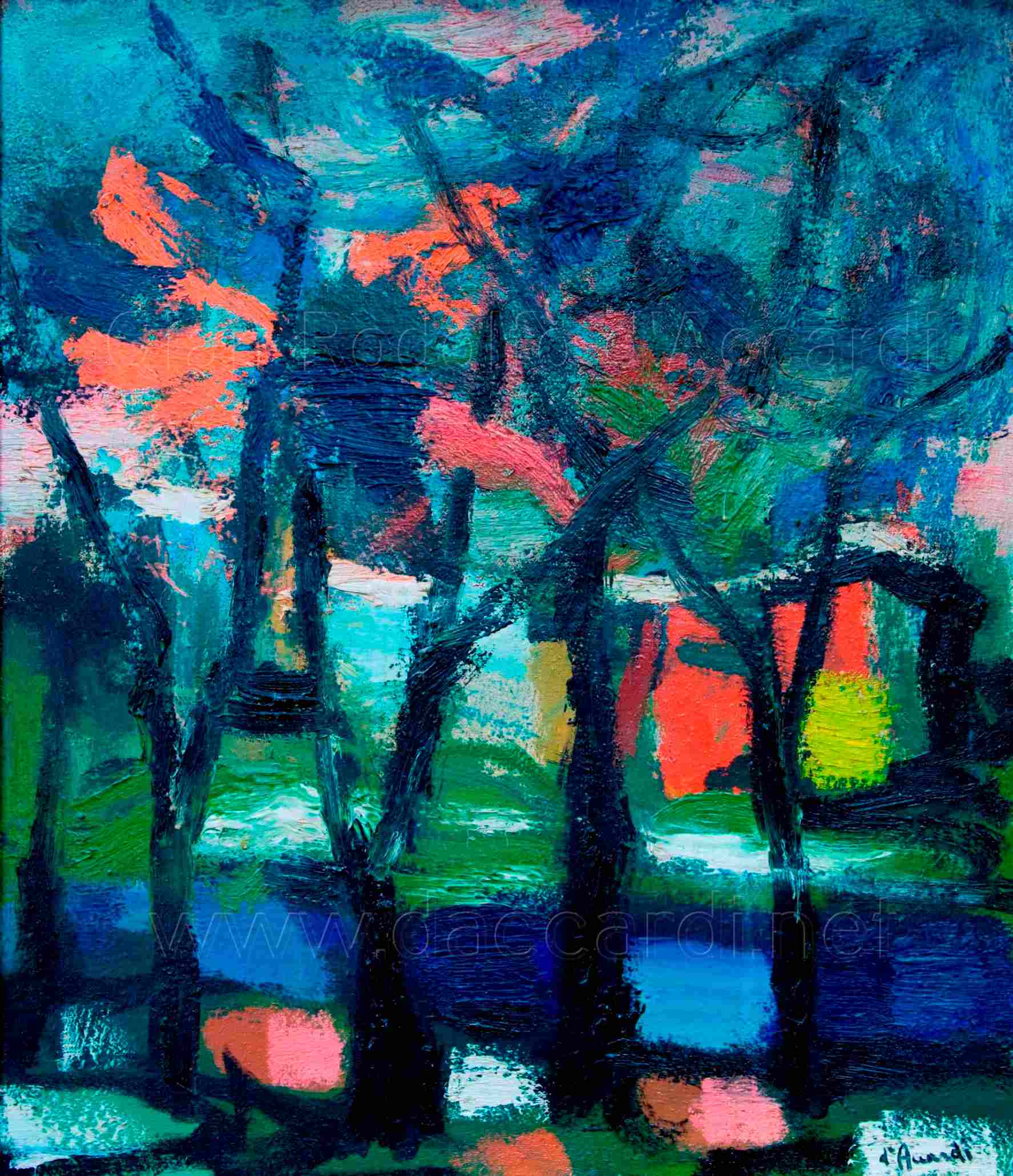 Il bosco e la marina, le periferie e le battaglie, che ritornano come costante tematica nelle opere di d’Accardi, acquistano dunque l’universalità emblematica di paesaggi immaginari, come le selve della mitologia classica o della lirica romantica.”